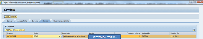 The mitigation monitor is designated for monitoring the transactions mitigated users have executed in the plug-in system. The monitor does this by running the report maintained under the Reports tab in the mitigation control definition as shown in Figure 27. This monitor ensures mitigated users’ IDs are doing jobs as per the business requirement and should report any fraudulent activity if found to the approver and business owner.
