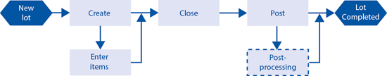 When you create a return lot, you need to enter return items (return information for all accounts) and close the return lot. After you process the return lot, if it contains any errors, you need to post-process the lot, correct the lot, and then complete the lot.