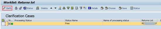 For standard return processing, you use activity keys in customizing. You can define the activities to be performed in the event of a return for each return reason, such as the following: