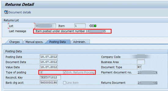 - The payment document to be reversed or the posting of a new receivable without reversing the payment document using the enhanced returns functionality