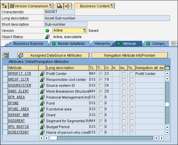 InfoObject 0ASSET has 0PROFIT_CTR and 0SEGMENT as navigational attributes