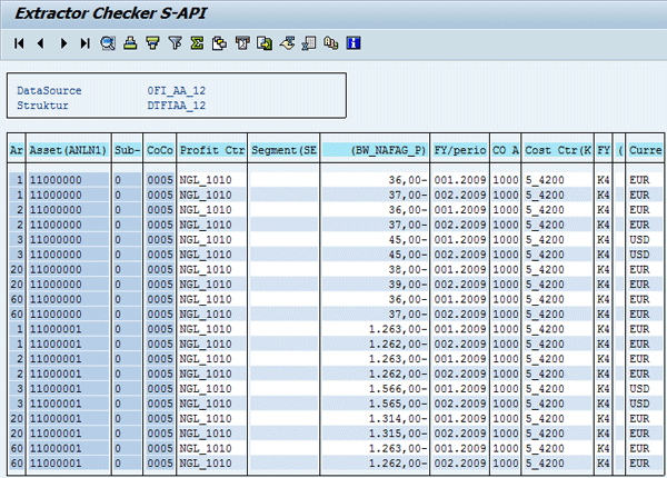 Extractor checker in SAP ERP for the 0FI_AA_12 data source