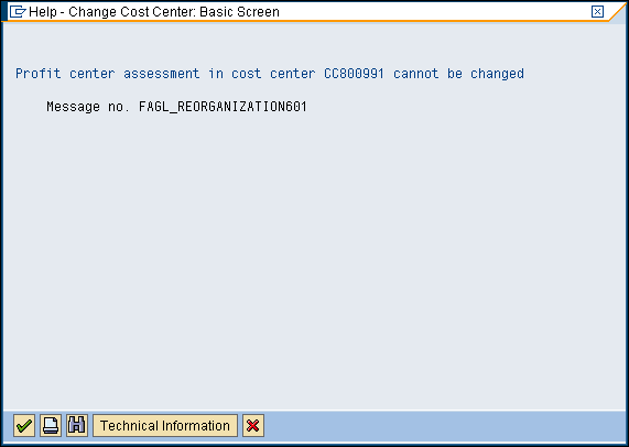 As an example, if you wanted to change the profit center assignment on a cost center prior to enhancement package 5 you could do so by defining a new analysis period. There were restrictions on this based on the timing of the change and postings to the affected cost center. With enhancement package 5, the change in the profit center is handled by the reorganization tool itself. If you try and change the profit center directly at transaction KS02, the error message indicates this shift in control by its message class (FAGL_REORGANIZATION) (Figure 6).