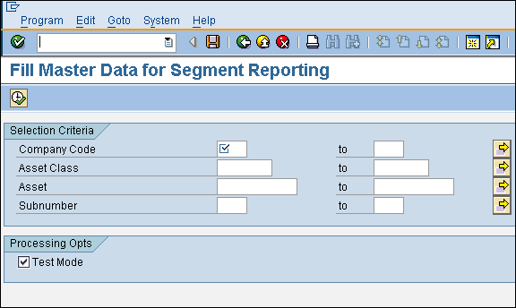 The first program is FAGL_ASSET_MASTERDATA_UPD, which assists in the initial population of the profit center and segment on the asset (Figure 7). This is required because the fields are initially blank for an existing implementation of fixed assets. The program is simple to execute as it reads the profit center and segment on the asset’s existing cost center assignment and makes the assignment based on its selection criteria.