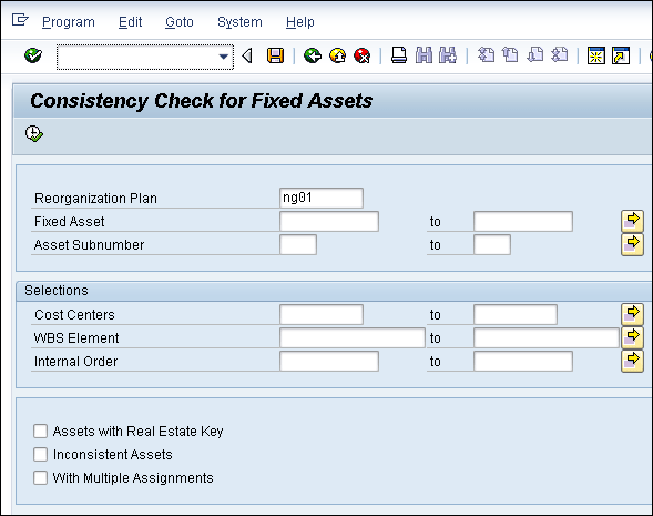 The second program, FAGL_R_ASSETS_CONSISTENZ_CHECK, performs a consistency check on the fixed assets (Figure 8). It performs several checks related to the asset’s current cost center and any newly assigned cost centers as a result of the reorganization plan. It also looks for any financial postings made after the reorganization.