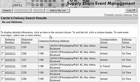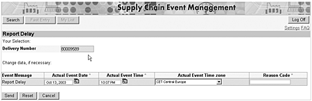 Actual data arrives in SAP Event Management via event messages, which are created in reference to individual event handlers and events. Event messages are created in a number of ways. Actual data can be entered in the SAP R/3 system manually or via EDI, and the event message can be extracted when the SAP R/3 document is saved. Alternatively, event messages can be entered directly into SAP Event Management manually or in batch. Event messages can also be created via remote function calls (RFCs) from other systems. Finally, event messages can be created via the Web, as you will see in the next section.