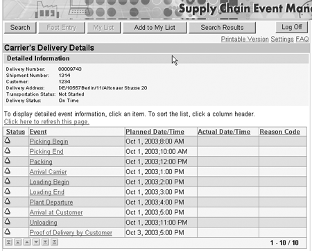 SAP Event Management allows companies of all sizes to accurately monitor complex logistics processes that contain multiple due dates and may involve external partners such as suppliers, logistics service providers, and customers. The Web capabilities of this new event management system provide an easy way for external partners to retrieve information and enter actual data regarding the business processes in which they play an active role.