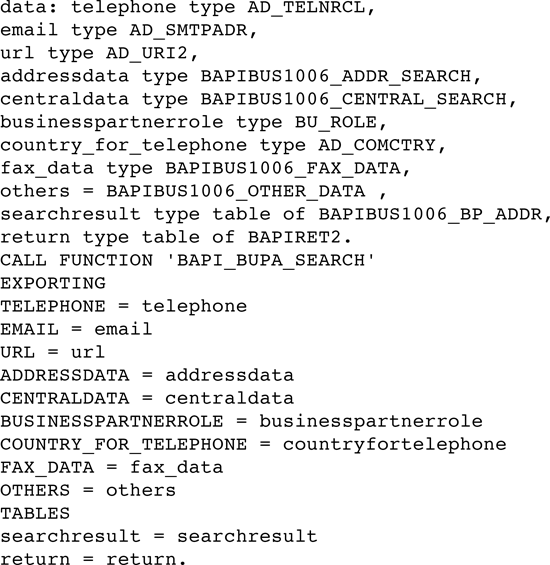 Listing 1 shows a common coding example to search for business partner data.