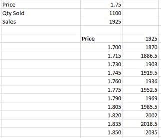 Sensitivity Analysis or What-if analysis is an excellent tool for Scenario Planning as it provides different outcomes in the scenario based on variation of one input. For example, say if the confidence interval at 95% confidence levels for the product’s selling price in 2022 is $17 to $18.50, what will be the sales or revenue when the price is increased every 15 cents. To derive this insight, a one variable data table (in Excel) can be used. The one variable data table in Excel is a Sensitivity Analysis technique used in situations when you want to see how the final result changes when you change one of the input variables. In the above example if the product’s unit selling prices changes from $1.715 to $1.730, then the revenue changes from $1,886.50 to $1,903.