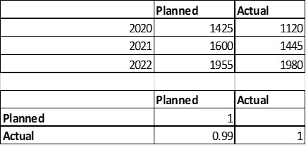 Variance Analysis is the difference between planned and actual values on various business entities or resources such as materials, labor, equipment utilization, energy consumption, overhead, and so on. It measures a product’s cost and profitability. Basically, variance shows how to move forward based on how your business has performed versus the expectations. In the above example, the variance analysis for the financial year 2022 is the difference between planned sales and actual sales, and this variance amount is $1,955 - $1,980 = $25.
