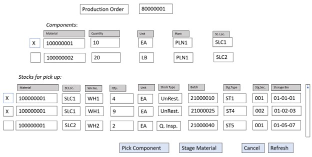 Fig. 2: A sample Production order components picking based on actual stock availability