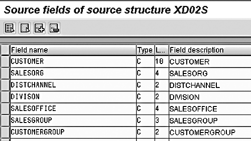 The first step is to create a source structure, which I’ll call XD02S. Give a meaningful description, in this case Source structure for XD02S. Maintain source fields for the source structure by entering Type, Length, and Field Description, as shown in Figure 7.