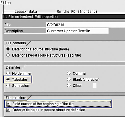 As an alternative to this example, you could use the standard SAP object 0050 – Customer Master, which would use a predefined R/3 interface program (RFBIDE00 – Batch Input Interface for Customers) to update data. Some standard objects offer direct input updates, which are much faster than batch input updates. Refer to www.ficoexpertonline.com/downloads to review step-by-step instructions for that example.