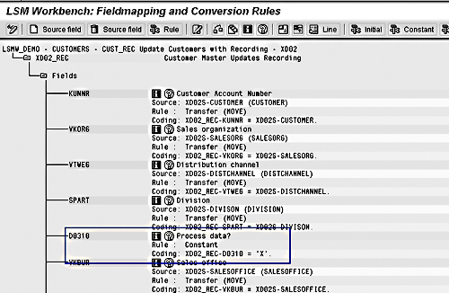 The objective of the first task was to define the target and its attributes. In this case, the transaction recording XD02_REC is the conversion task, and fields in XD02_REC become the target structure.