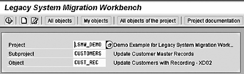 You call LSMW by executing transaction code LSMW. All conversions are grouped together under a Project/ Subproject/Object structure. Grouping together conversions within Project and Subproject makes it easier for you to maintain and retrieve your own conversion objects. For example, for demonstration purposes, I’m creating a Project called LSMW_DEMO and a Subproject called CUSTOMERS for all different customer updates—such as transaction recording (CUST_REC). (See Figure 2.)