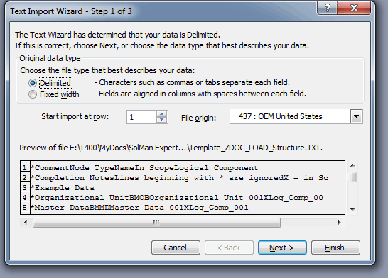 Open the saved Excel template so that you can begin filling in your desired BPH structure. Figure 4 shows the Excel Text Import Wizard. I’ve found accepting the defaults and clicking the Finish button works just fine.