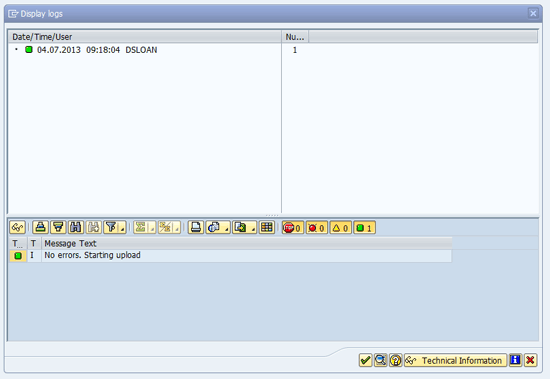 The system prompts you for where to find your load file. Be sure you have saved your Excel template in .txt format and have closed Excel to avoid any file locks. Once the upload file is selected, Solution Manager pre-processes the file searching for errors. If the file passes the pre-processing checks, it displays a green square in the log review window (Figure 8).
