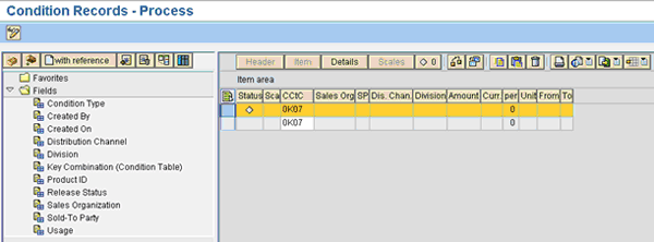 Condition tables are a combination of search and result fields that uniquely identify individual condition records. When you search for condition records, use search fields to define the search criteria. Examples of these fields are sales organization, distribution channel, price list, currency, product, and division. The supported data types for search fields in the search criteria are: