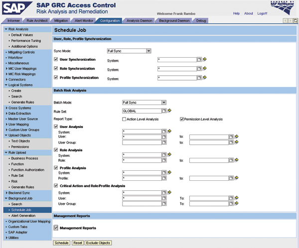 Now you are ready to run initial full batch risk analysis across all your back-end systems and all users. This includes three tasks, which you can schedule together as one background job (