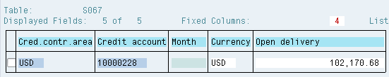 The key data for credit management, the open sales values displayed in transactions FD32 or FD33, is contained in Sales Information System (SIS) tables S066 and S067. For usage details see Table 2. For SE16 table content examples see Figures 9 and 10. SAP maintains a running total of the customer credit exposure only; there is no table with item level detail of the credit exposure values.