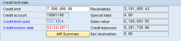 To view the key credit values use transaction FD32 or FD33. Go to the status view to see the balances (Figure 1). In the case of the sales value, you can use menu option Extras > Sales value to break down the information by orders, deliveries, and billing documents (Figure 2).