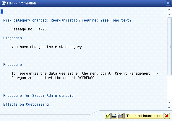 When you change an existing customer’s risk category, using transaction FD32 and going to the status view, an informational message is displayed (Figure 3). Clicking the question mark icon displays further details, including the correction report you need to run (Figure 4).