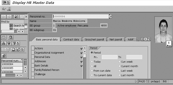 Display HR Master Data screen displays the first employee photo