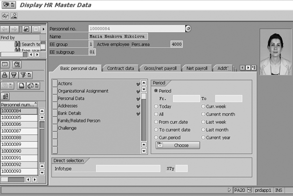 DatDisplay HR Master a screen (transaction PA20)