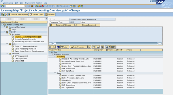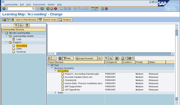A Learning Map in SAP Solution Manager is a collection of structured end-user training material based on a specific role or end-user assignment. The presentation format can be determined by the project or author of the material, although most of the time it remains consistent.