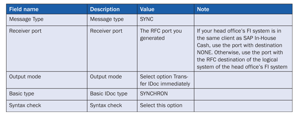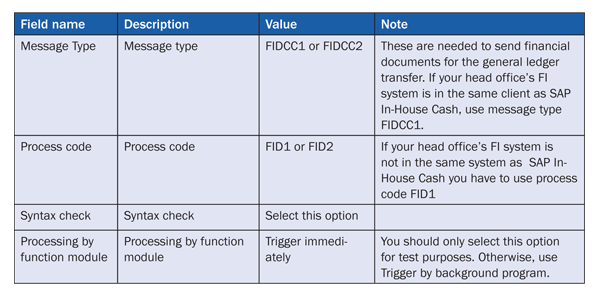 If your head office’s FI system is not in the same client as SAP In-House Cash, you must also maintain the inbound parameter shown in Table 4.