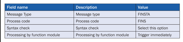 Inbound parameter for the message type FINSTA