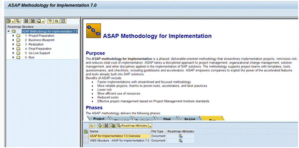 You can start with the Project Methodology standard. ASAP Methodology is an SAP standard methodology used by most SAP customers (Figure 1). SAP Solution Manager provides Roadmaps for reviewing methodology and to act as a guide through each project phase. Execute transaction RMMAIN (Roadmap) in SAP Solution Manager to access Roadmap content. Roadmaps provide well-documented help broken into project phases. Accelerators are also available and are helpful when looking for document type templates to use on projects. You can refer to my article “Speed Up SAP Projects with Roadmap Accelerators” for more information on Roadmap accelerators.
