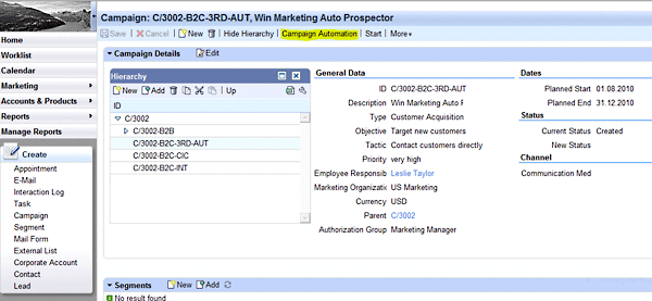 Companies can use the SAP CRM campaign automation tool to take advantage of automated marketing campaigns while still having the flexibility to outsource key components of the process. They can take advantage of the email channel to directly communicate with prospects and customers because it is effective from a communication and cost standpoint. For many companies, the supporting processes needed to facilitate the use of an email channel are a huge undertaking. You can achieve a significant ROI by providing services to communicate with prospects and customers via an email channel without sacrificing efficiency in marketing programs.