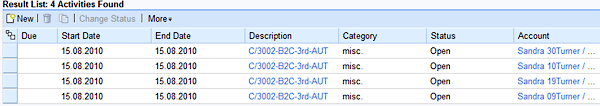 You can view the activities using the Show List Records link from the external list (Figure 10) or by searching for them manually (Figure 11). These activities are linked to the campaign for which they were created. This link was established during the ELM import using the mapping format for the Campaign ID field with a mapping rule that specified the constant value for the campaign ID C/3002-B2C-3RD-AUT.