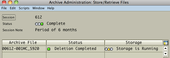 Double-click any of the archive sessions shown in this screen (for example, 000612 -001MC_S920). The status of the archiving session is listed in the next screen (Figure 10).
