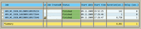 You can check the results of archiving statistical data from information structure S920 using transaction code SM37 and by opening the spool created. In transaction code SM37, enter your user ID from which the job was created. The background jobs appear (Figure 22).