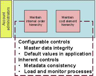 We created separate roles to manage the tasks of the account administrators. The account administrators maintained the internal order and cost element hierarchy in ECC. They had an internal notification process from the regional sales managers, which was used as the basis to update the internal order and cost element hierarchies in ECC. You can see the configurable controls and inherent controls that are delivered with SAP NetWeaver BI in Figure 6.