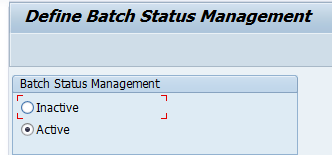 Make sure the batch status management is active. To make batch status management active, click the Batch status management bar in the Batch Level and Batch Status Management screen (Figure 1). In the screen that appears (Figure 3) select the Active radio button if it is not already selected and press Enter. Batch status management is now active.