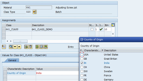 Batch management is linked with classification, but can be used without classification, too. You can create several classes for each of the applications that require specific characteristic values in a batch. These class groupings could be for finished goods specifications, inspection of products, process order results recording, inspection results recording, or storage conditions in a warehouse. You assign these classes to the material master. When the batch is created for the material, the class assignment makes it possible for the classification data to be available for batch management. The characteristics for materials managed in batches provide information for any kind of evaluations on particular attributes of batches, whether in connection with quality issues, production issues, or complaints. We make use of this batch management functionality to capture the COO of the material.
