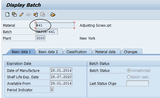 In Figure 13, in the Basic data 1 tab, you maintain the date of manufacture, shelf life expiration date, available from date of the batch. The Period Indicator is the unit of measurement used for maintaining the shelf life expiration details. In our example this indicator is D (daily maintained by system).