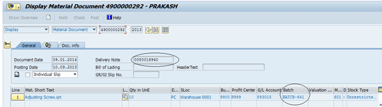 The goods issue of 10 pieces is done from the BATCH-641, which can be seen from the material document generated because of the movement of data from BATCH 641.