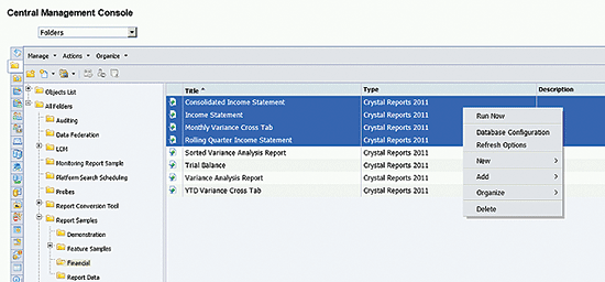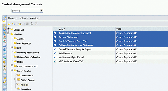 The CMC of BusinessObjects 4.0 is a Web-based tool that you use to perform administrative functions and manage the 4.0 environment. In addition, the CMC allows the administrator to set and update the data connection for any Crystal Report that is included within the 4.0 system. A useful feature is the ability to select multiple Crystal Reports objects for which you want to change data source settings. However, only those report objects that have the same data source connection are updated.