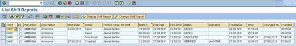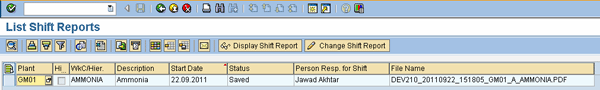 . This action generates the list of shift reports that meet the specified criteria (Figure 20). Notice that standard shift report functions, such as display or change the shift report, are available here.