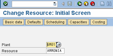 To change a resource in PP, follow menu path Logistics > Production – Process > Master Data > Resources > Resource > Change or use transaction code CRC2 (Figure 7). In my example, I set the plant as GM01 and the resource as Ammonia.