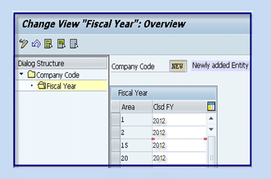 The screen shown in Figure 9 shows that the last closed fiscal year (2012) is the current year (1). To carry on with the year-end closing of previous years, you need to use transaction AJAB. After you execute the transaction, enter the company code and fiscal year to be closed. Press enter.