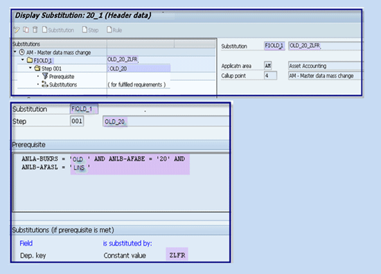 The defined substitution rule can be applied on all the asset masters in the existing company code retrofitted. If the company code is OLD with the depreciation area 20 and the depreciation key LINS if TRUE, then replace the depreciation key with ZLFR (Figure 14).