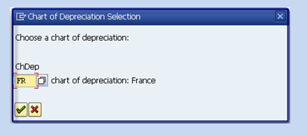 It is always required to set the chart of depreciation before you change or configure any settings in FI-AA. To set the chart of depreciation, use transaction code OAPL or follow IMG menu path Financial > Accounting (New) > Asset Accounting Valuation > Set Chart of Depreciation (Figure 3). Enter the country for which the chart of depreciation is to be set and then click the green check icon.