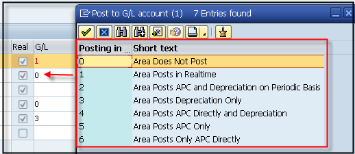 - Depreciation area 01 (group depreciation in local currency) is linked to 1 (area posts in real time) in the SAP General Ledger along with target group 0L (leading ledger)