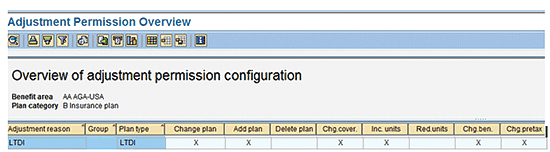 . You now can select different permissions for the benefit plan based on the adjustment reasons. Figure 4 is the overview of the configuration for the permissions granted.