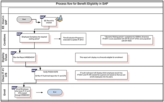 Figure 6 shows the process for enrolling employees in an SAP benefit plan based on fixed eligibility conditions.